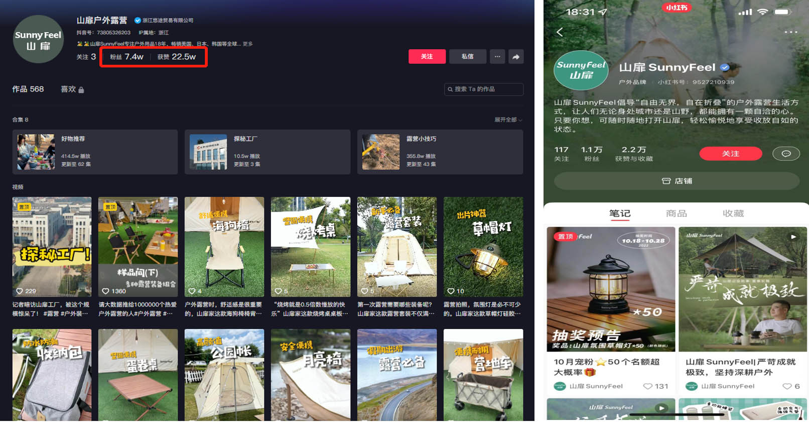 这些成果见证了山扉这个新锐品牌的快速崛起, 以创新的互联网方式, 切入“家庭户外”场 景,以折叠桌椅作核心,颠覆传统户外品牌的打法 ,成为户外用品行业的一匹黑马。