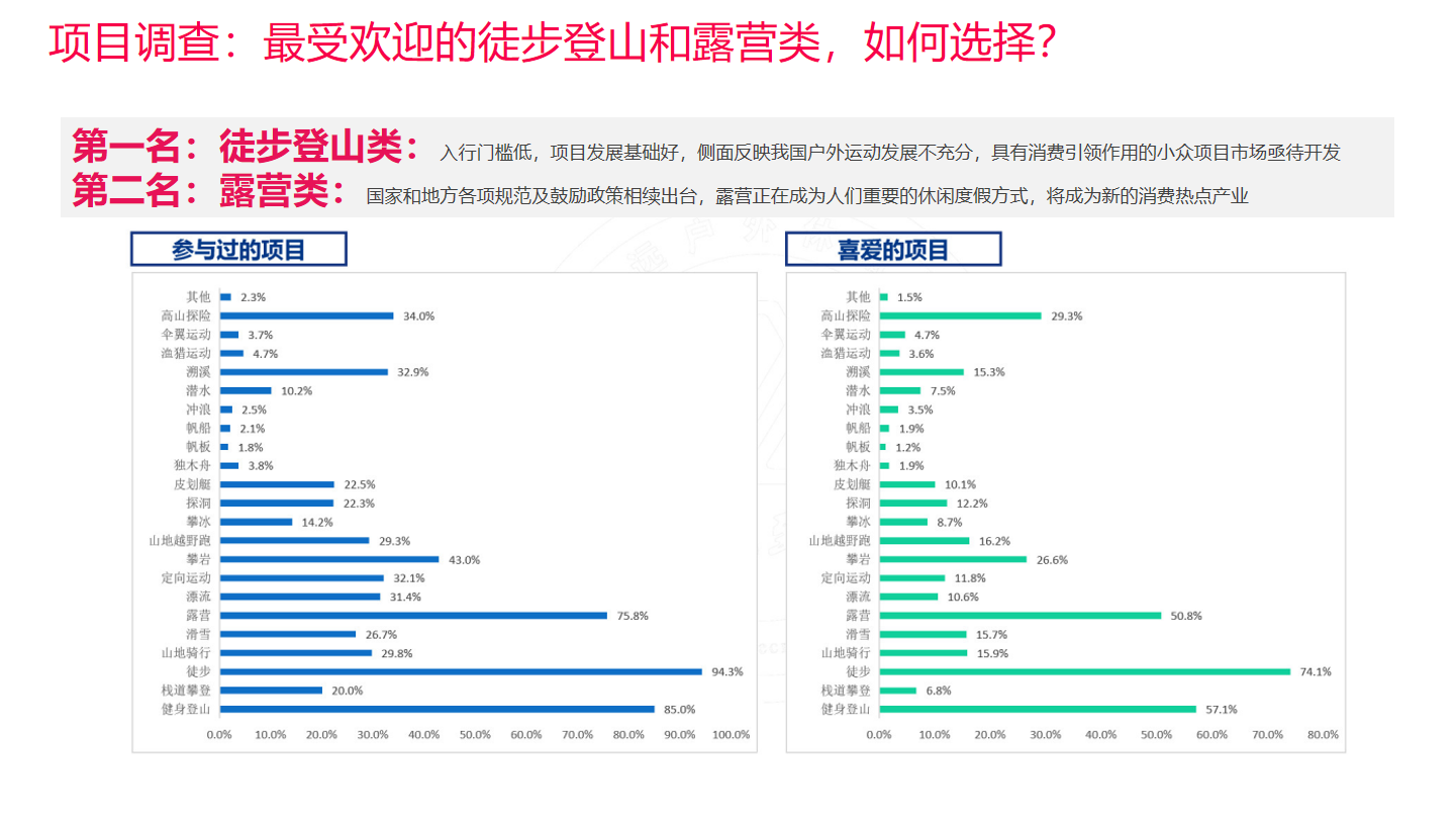 综合考虑政策扶持、经济发展、人群消费习惯以及技术等多个方面,最终,我们发现休闲类的户外露营是一个值得深耕的赛道,选择户外露营市场的优势: