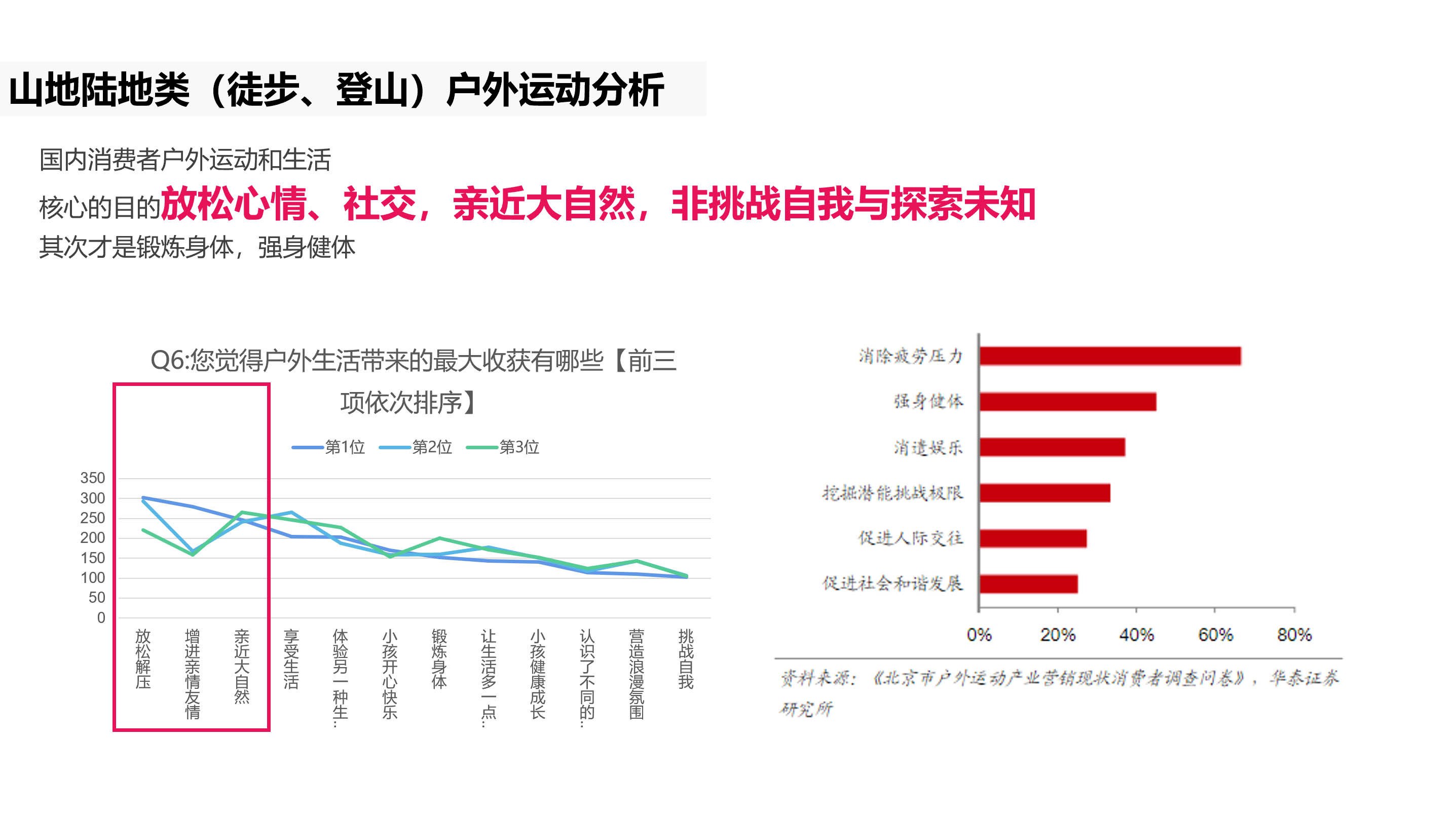 中国人讲究天人合一,道法自然,与自然和谐相处,更愿意享受户外,不同于追求“征服自然”欧美户外风;同时,专业户外即是小众户外,小众户外则意味着小的市场规模。休 闲类户外产品才更能满足大众的需求,为企业和社会创造更多的价值。